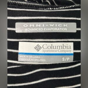 This Columbia sheath dress is perfect for any occasion, whether it be a casual day or a day of shopping. The dress features a black and white striped pattern, short cap sleeves, and a round neckline. The pullover closure adds to the dress's comfortable fit, while the stretch material ensures a flattering look for any body type.