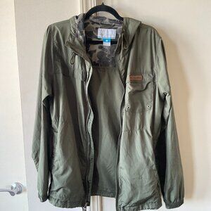Columbia, windbreaker, hiking jacket, outdoor layer, lightweight jacket, trail wear, activewear, travel jacket, sporty style, green jacket, small jacket, spring layer, fall outerwear, gorpcore, adventure wear, utility jacket, camping gear, performance outerwear