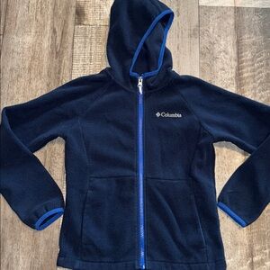 Columbia Dark Blue Hooded Fleece Jacket-size Small/8