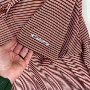 Columbia Dark Red Striped Short Sleeve Casual Performance Light Polo Size XL