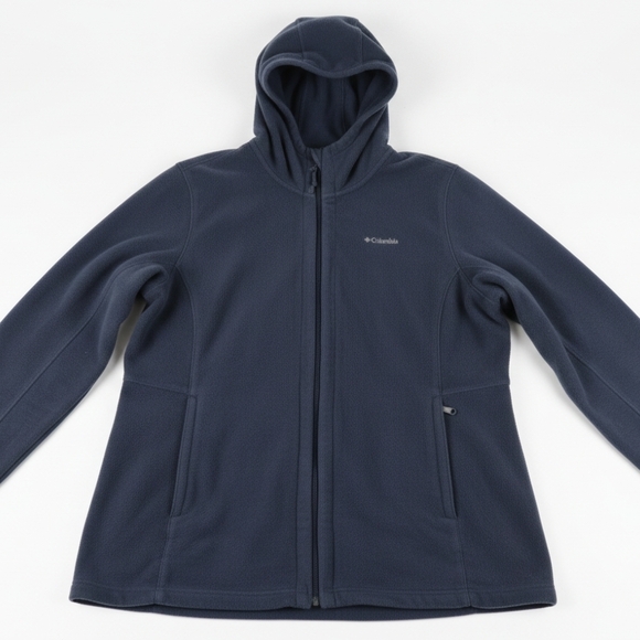 Warm fleece jacket by Columbia. Features a hood and full front zipper. Perfect for chilly days.