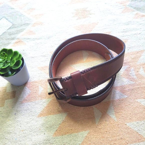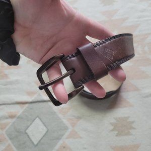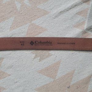 Columbia Double Stitch Brass Buckle Brown Leather Belt Men's 40. Pre-owned