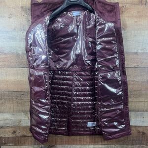 Columbia Double Zipper White Out Long Puffer Vest Burgundy Ladies Small.
