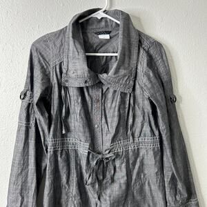 Columbia Dress Womens Small Gray High Tail Honey II Outdoor Chambray Snap Button