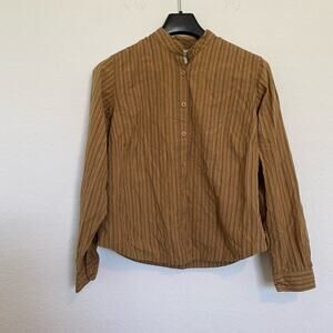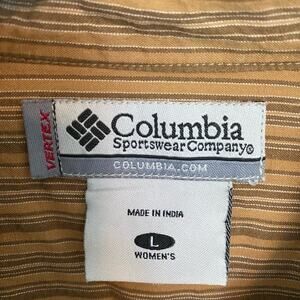 Columbia Embroidered Cotton Button Down Brown Stripe Large