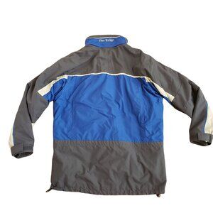 Nice coat with zip-out fleece lining inside. Blue, gray, and cream in color. Bungie drawstring at the waist and hem. 4 or more pockets in front. Great condition.