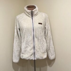 Columbia Fire Side High Pile Plush Fleece Jacket Size Large Cream Full Zip Up