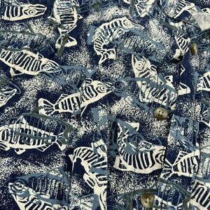 Columbia Fish Print short sleeve shirt Flax Blend Blue size M