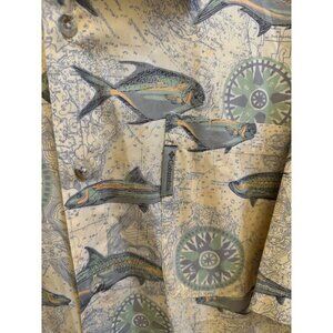 Columbia Fishing Print Shirt Button Up Short Sleeve Outdoor Camp Shirt sz L