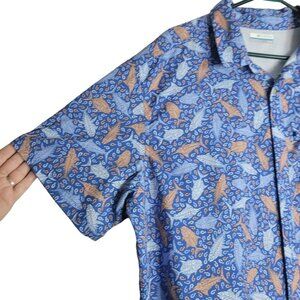 Stay stylish and cool with the Columbia Fishing Short Button-Down in Mens XL. This deep-sea ocean themed shirt features a unique Hawaiian-inspired sword tuna print.