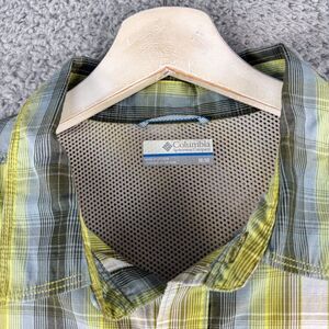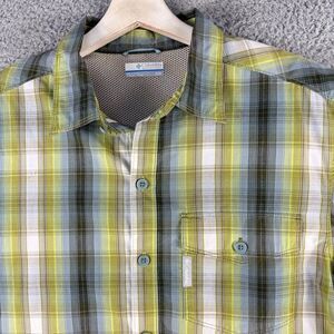 Columbia Fishing Shirt Mens Medium Green Plaid Vented Outdoor Casual Camping