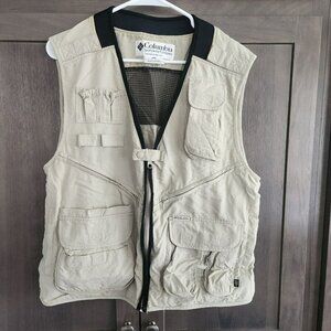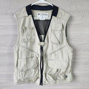 Columbia Fishing Vest Unisex Medium Multiple Pockets Beige Hiking Lightweight