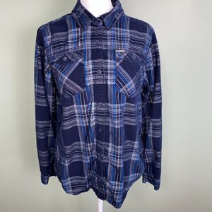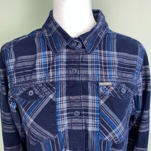 Columbia Flannel Shirt Womens Medium Blue Plaid Button Up Gorpcore Outdoor
