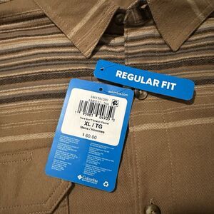 Columbia Flare Gun Stretch Flannel XL Button Up Stripe Long Sleeve Shirt Brown