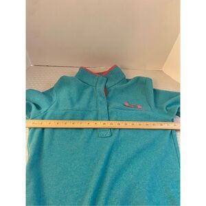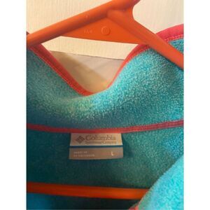 Columbia Fleece Blue Pink Fleece large Snap Buttons. measures 20" chest, 26" long. very good used condition. 100 polyester.