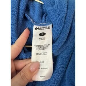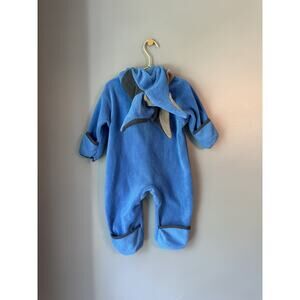 EUC size 12m blue columbia fleece bunting - has a fun pointy/jester vibe hood