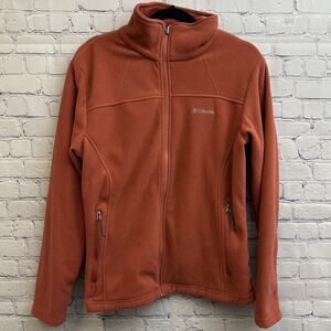 Columbia Fleece Full Zip Jacket Large Peach Orange Logo Fall Lightweight