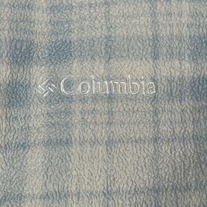 Columbia Fleece Full Zip Jacket Light Blue Plaid Zip Pockets Lounge Sz M