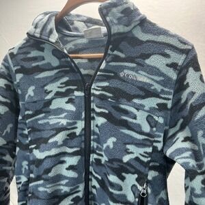 Keywords: Columbia, fleece jacket, camo jacket, camouflage, full zip, pockets, kids jacket, girls jacket, boys jacket, size 10/12, blue jacket, warm jacket, outerwear, fleece, childrens clothing