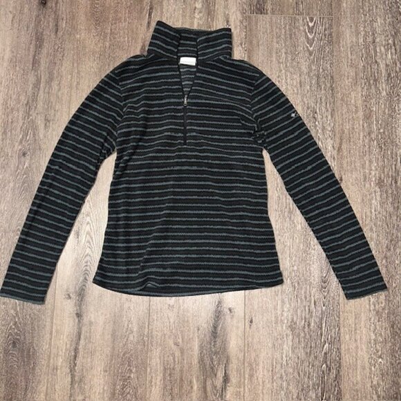 Columbia Fleece Jacket Half Zip Blue Black Striped Women’s Size S Small