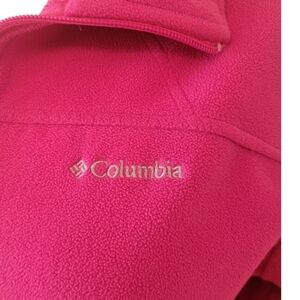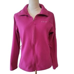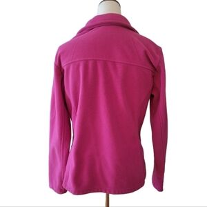 In bright fuschia with zipper pockets. 100% polyester, 21" pit to pit, 25" total length