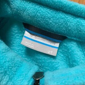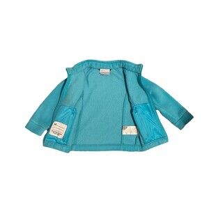 Keep your little one warm and stylish with this Columbia fleece jacket. The teal-colored jacket is made of 100% polyester with a polyester lining. It features a full zip closure, long sleeves, and a hood for added protection against the cold.
