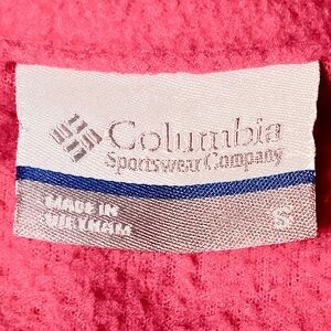 This is a very cute and comfy loved COLUMBIA Full Zip Soft Fleece Bright Pink Jacket - Drawstring across bottom hem - 2 Zippered Slit Hand Pockets in front