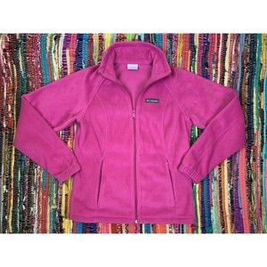 Columbia Fleece Jacket Womens Small S Pink Full Zip Mock Neck Sweatshirt Pockets
