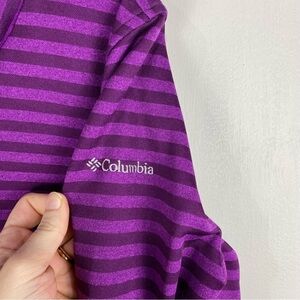 Columbia Fleece Lined Striped Pullover Turtleneck Sweatshirt Purple Size Medium