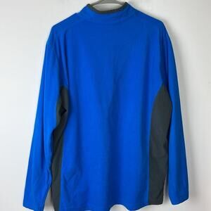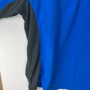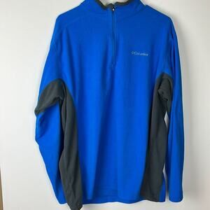 Gently Used Columbia Fleece Quarter Zip Sweater. This one is missing its size tag. However, it fits like a men's large in my opinion. Nice electric shade of blue. Darker grey accents.