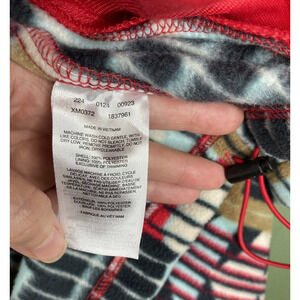 Columbia Fleece Mens Medium Zip Up Gorpcore Steens Mountain Print XM0372. All over print, has pockets that zip shut, toggle drawstring on waist to adjust, full zip. No rips or stains. Good used condition. Fabric may show normal signs of wear. Approx measurements shown are 27.5: long, 21.25" p2p laid flat & 31" long neck to wrist.