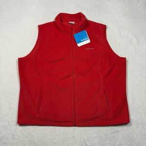 Columbia Fleece Vest Womens 3X Plus Red Full Zip Pockets Collar Outdoor NWT