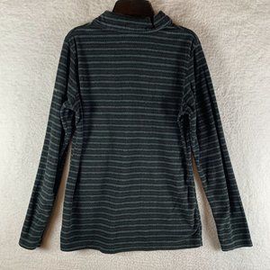 Columbia Fleece Women's Medium Blue Striped Mock Neck Quarter Zip Collar 7964