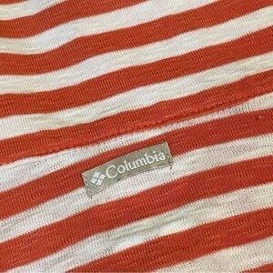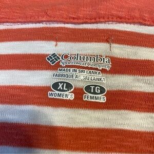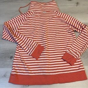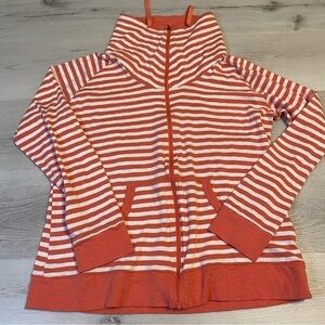 Columbia Full Zip Cowl Neck Lightweight Striped Sweatshirt, Coral/White XL