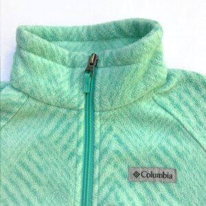 Columbia Full Zip Fleece Jacket Girls S Small 7/8 Aqua Teal Green Zig Zag Stripe
