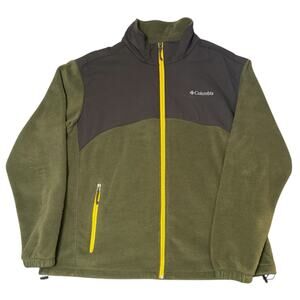 Columbia fleece jacket, men’s outdoor jacket, full zip, WM6715, hiking gear, gorpcore, cold weather layer, camping jacket, olive green fleece, Columbia Sportswear XL