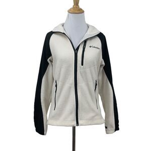 Columbia Full Zip Jacket Womens S Small Cream Colorblock Fleece Raglan Pockets