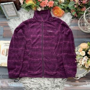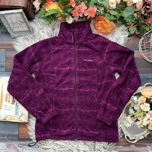 Columbia Full Zip-Up Fleece Rasberry Color Dual Toned Patterned Jacket