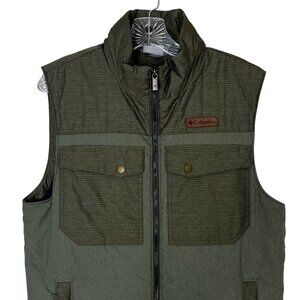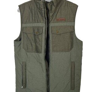 Columbia Full-Zip Insulated Vest Mens Small Green Pockets Outdoors