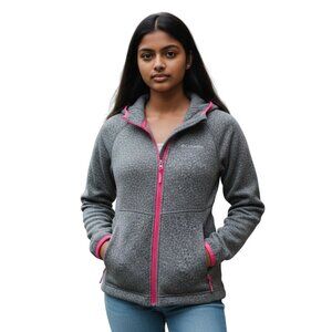 Columbia Girls Heather Gray Hooded Zip-Up Jacket S Polyester