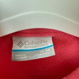 This is an excellent used condition Columbia Benton Springs fleece jacket. The jacket is a really vibrant pink and is sized 18-24 months. The jacket has not blemishes or issues with zippers at all.
