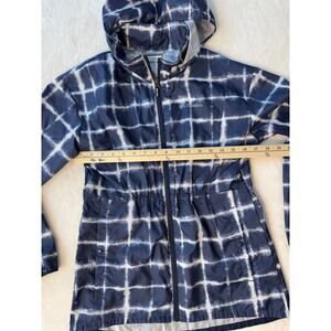 Columbia Girls Lightweight Rain Jacket Navy Blue White Print Windbreaker Coat L