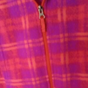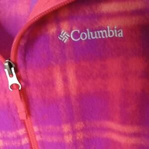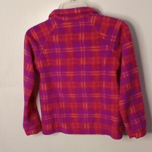 Columbia Girls Size Medium Pink and Orange Plaid Fleece Jacket. Athleisure, War