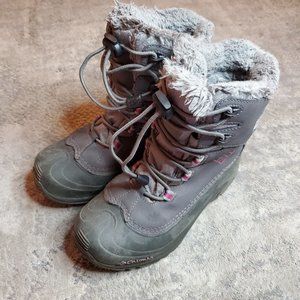 Columbia Girls Sz 3 Bugaboot Plus 3 Titanium Omni-Heat Insulated Boots Gray Pink