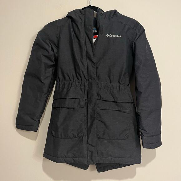 Columbia Girls Winter Jacket Coat Charcoal Gray Hooded Omni-Heat Parka Medium