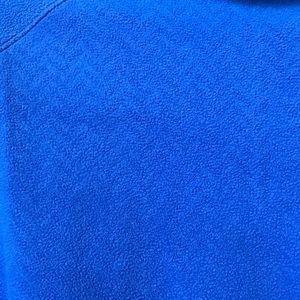 Size M. Beautiful Royal Blue color. Polyester Fleece. Fits true to size in my option. Bought this from a local Columbia store for full price January 2016 and have worn it a handful of times and washed it a few times as well. In perfect condition. No holes or stains. Zipper is fully functional. No pockets. Has a zigzag print on it but hardly noticeable!! Comment below for any questions! 😊