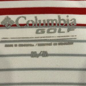 Keywords: Columbia Golf, men's polo, multicolor, striped, short sleeve, breathable fabric, casual wear, summer polo, embroidered logo, golf shirt, regular fit, collared neckline, pre-owned.
