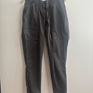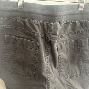 Comfortable and versatile Columbia women’s pants made from a soft cotton blend with stretch. Features an elastic ribbed waistband with adjustable drawstring, tapered jogger-style legs with elastic cuffs, and functional front and back pockets. The interior has a lightly brushed feel for added comfort, making these perfect for casual wear, travel, lounging, or light outdoor activities.
