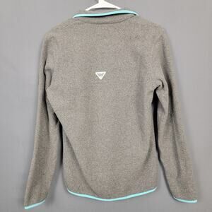 Columbia Gray Fleece Snap Pullover Blue Trim Warm Soft Outdoor Layer