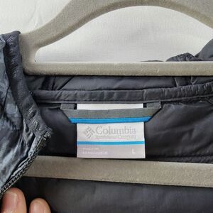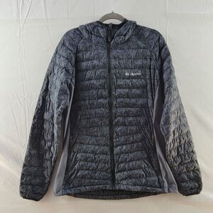 Columbia Gray Floral Print Puffer Hooded Jacket Front Zip Pockets Long Sleeves L